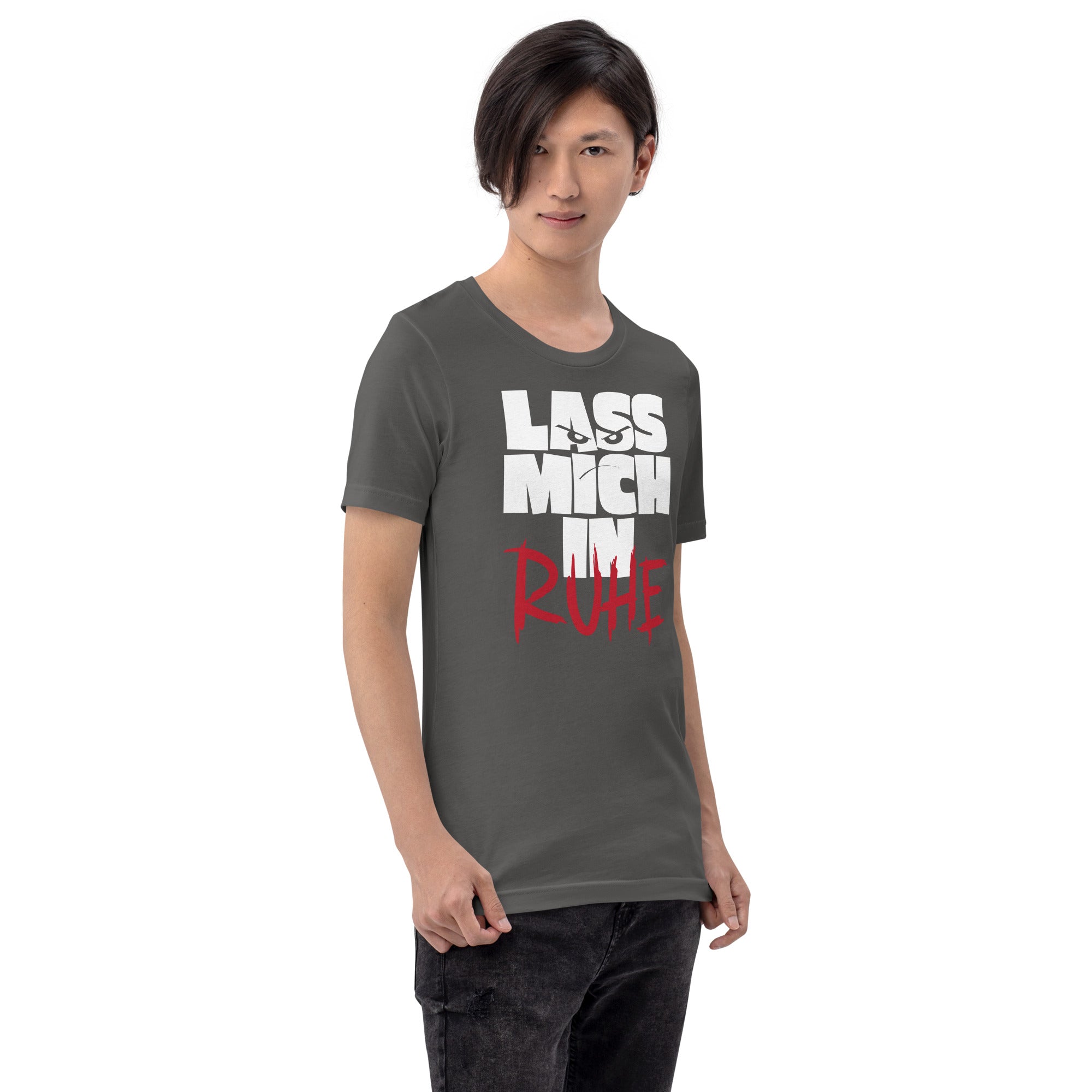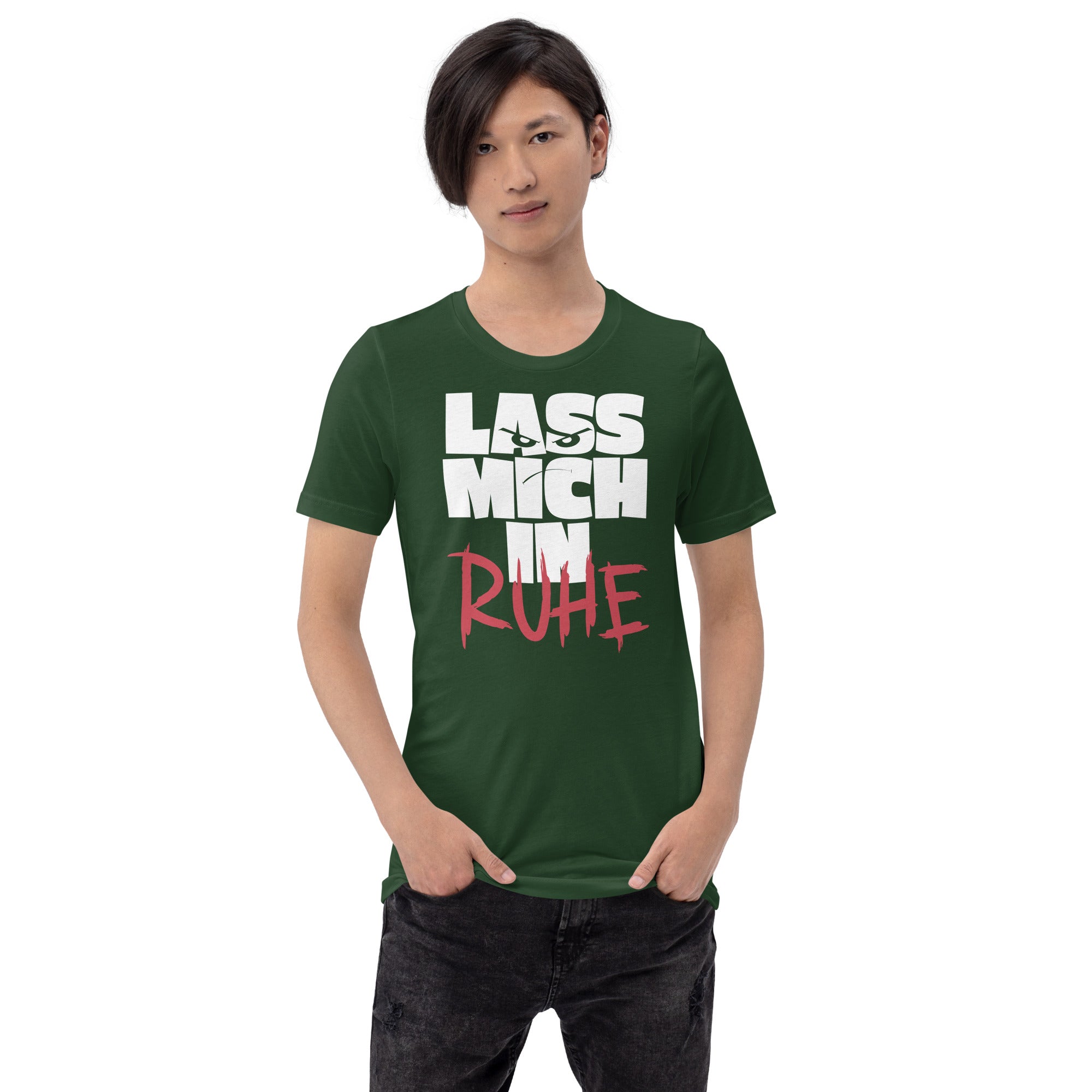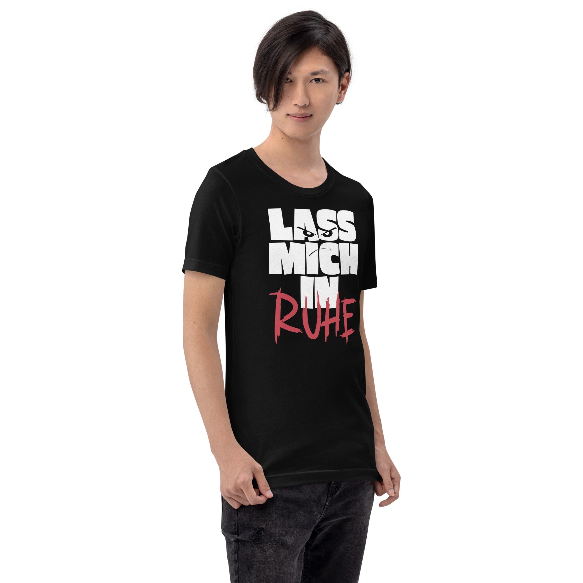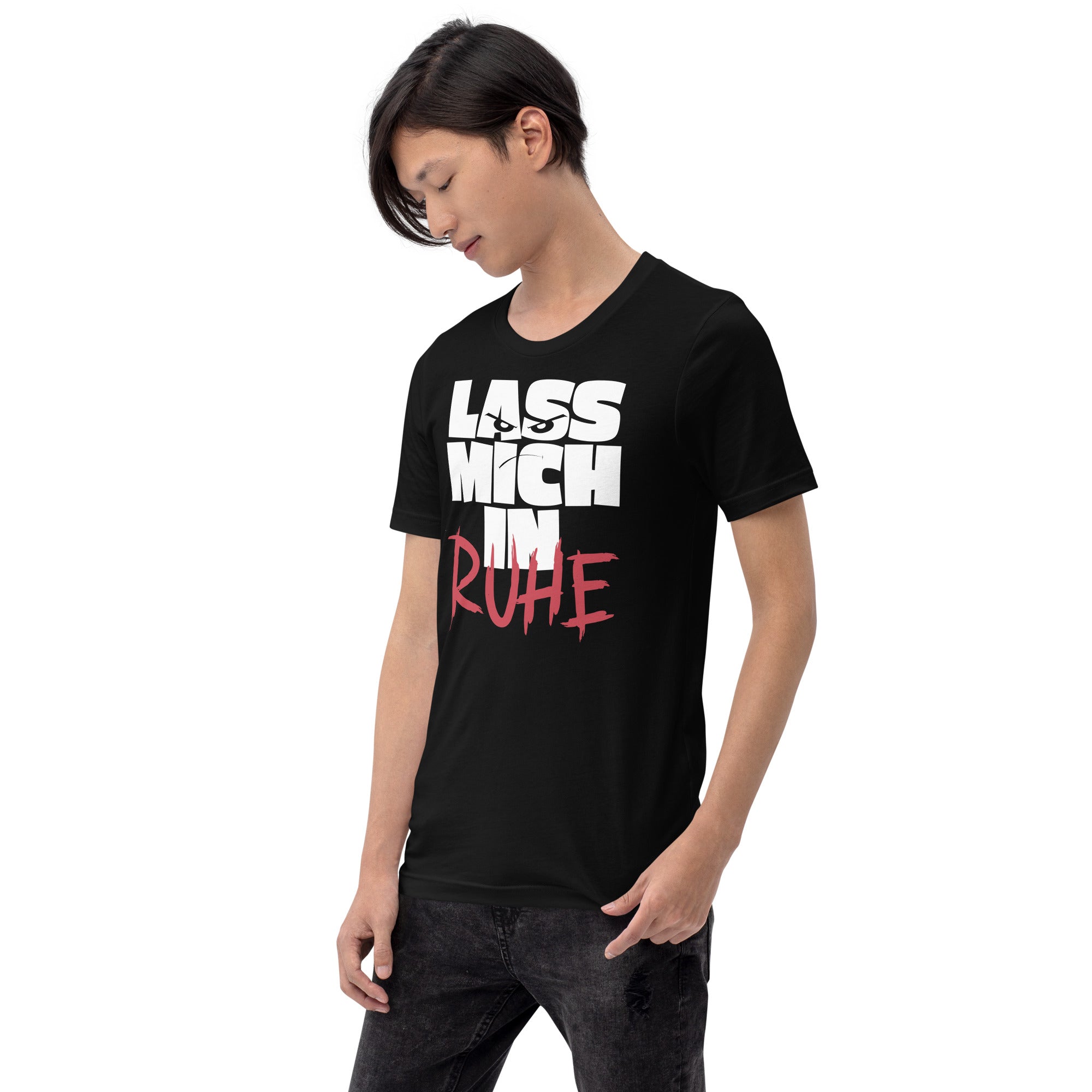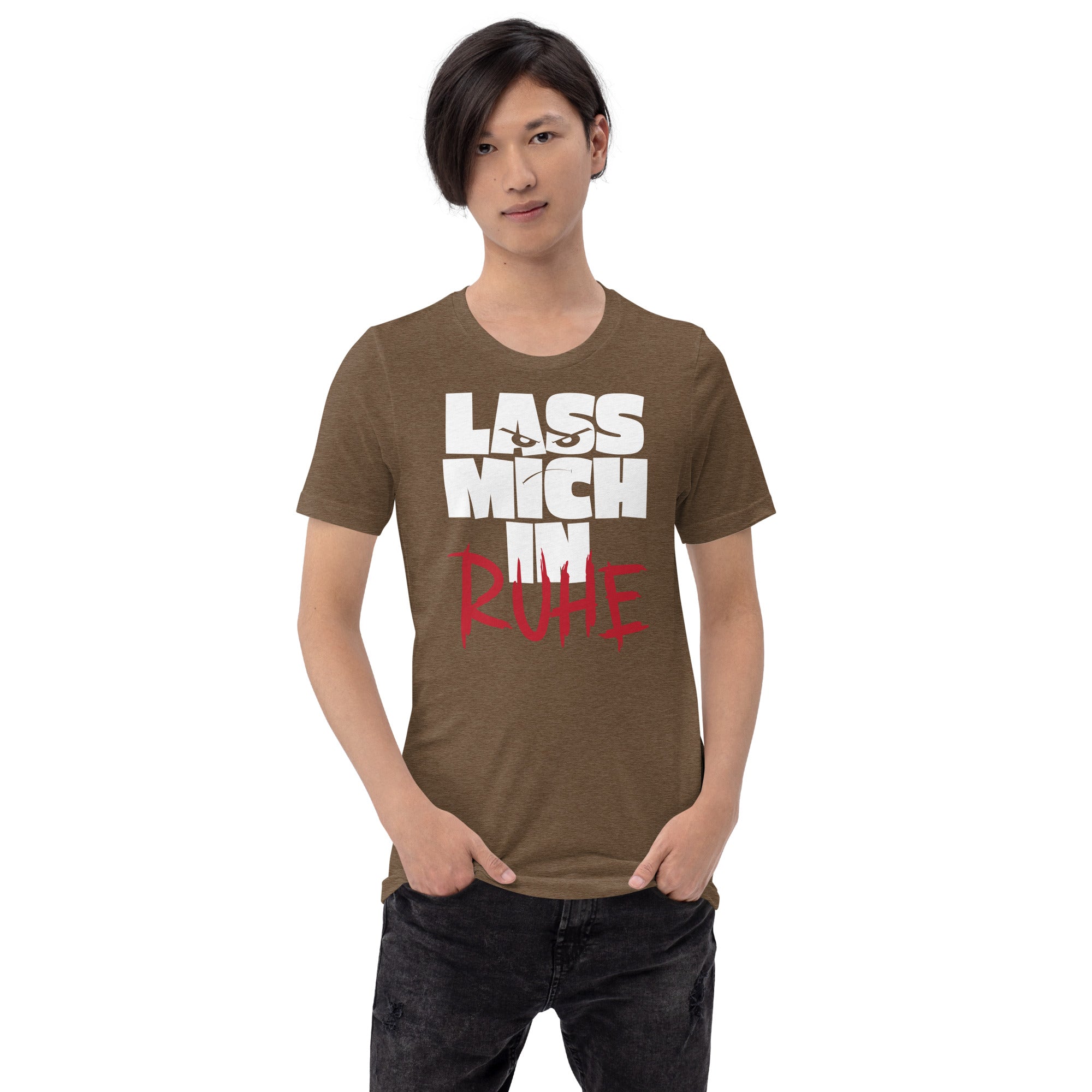 Phrase ' Lass Mich In Ruhe ' german for  ' Leave Me Alone ' in bold print with mean eyes graphic