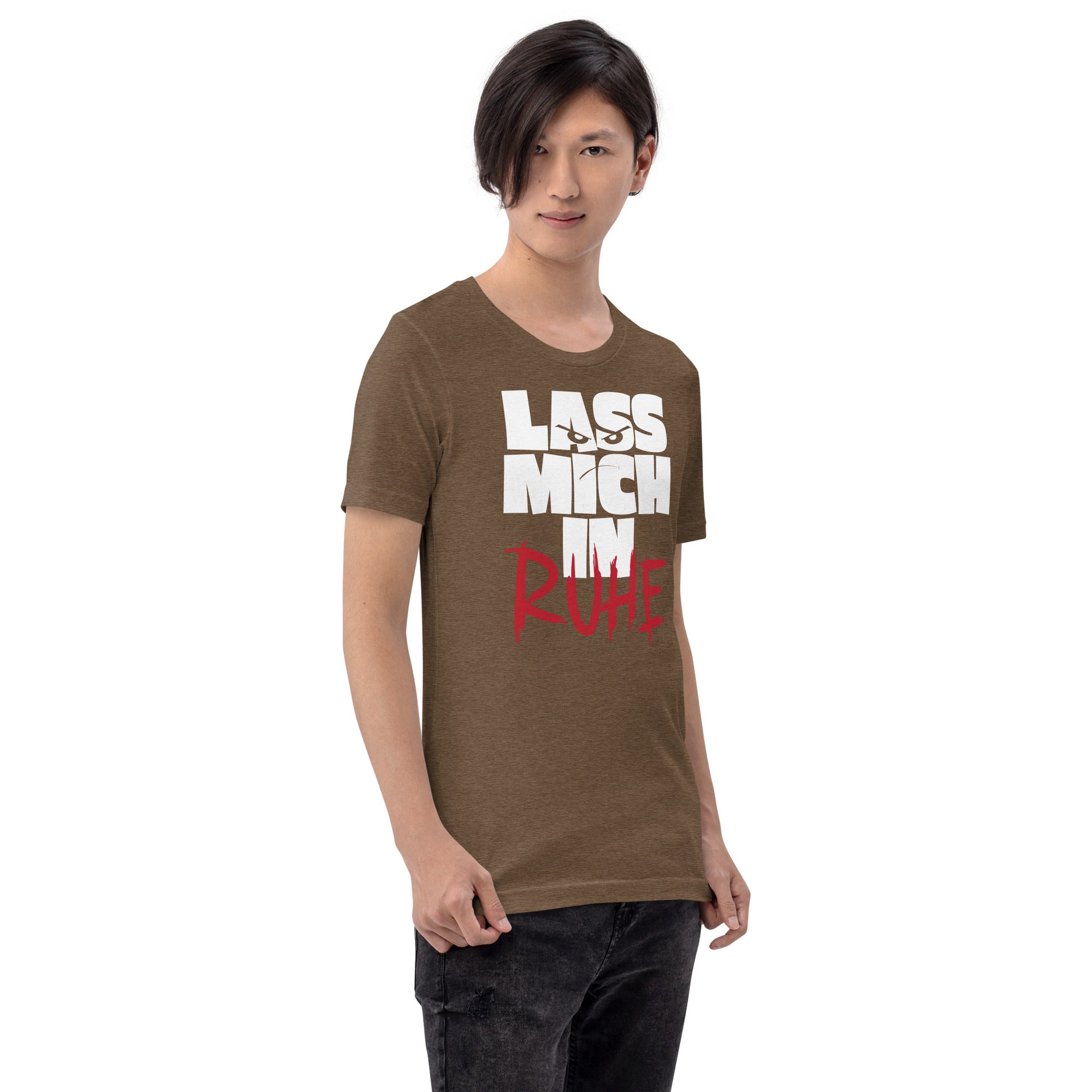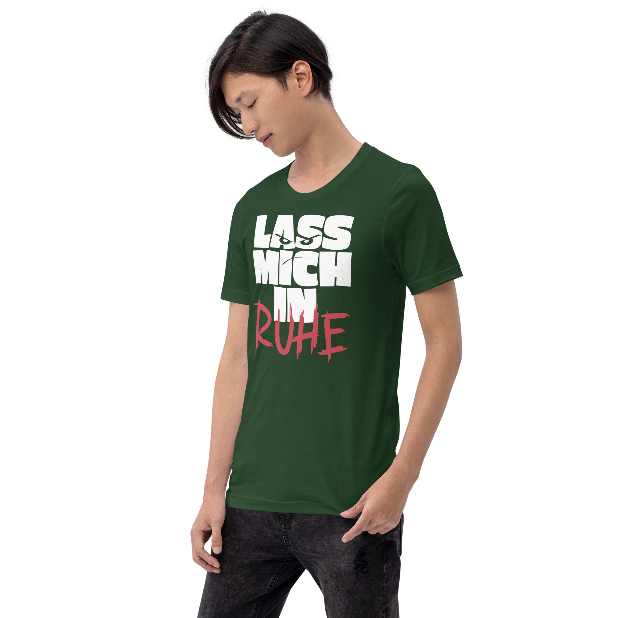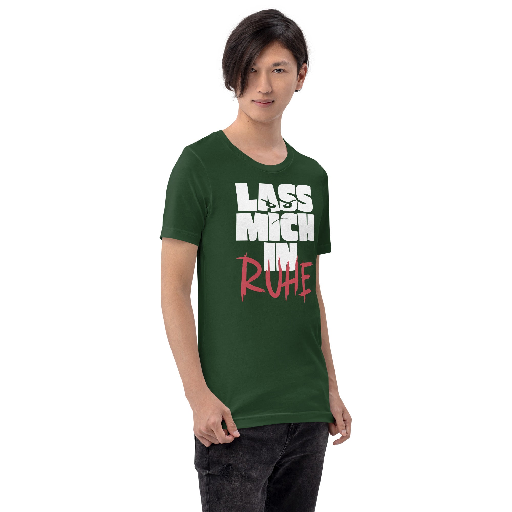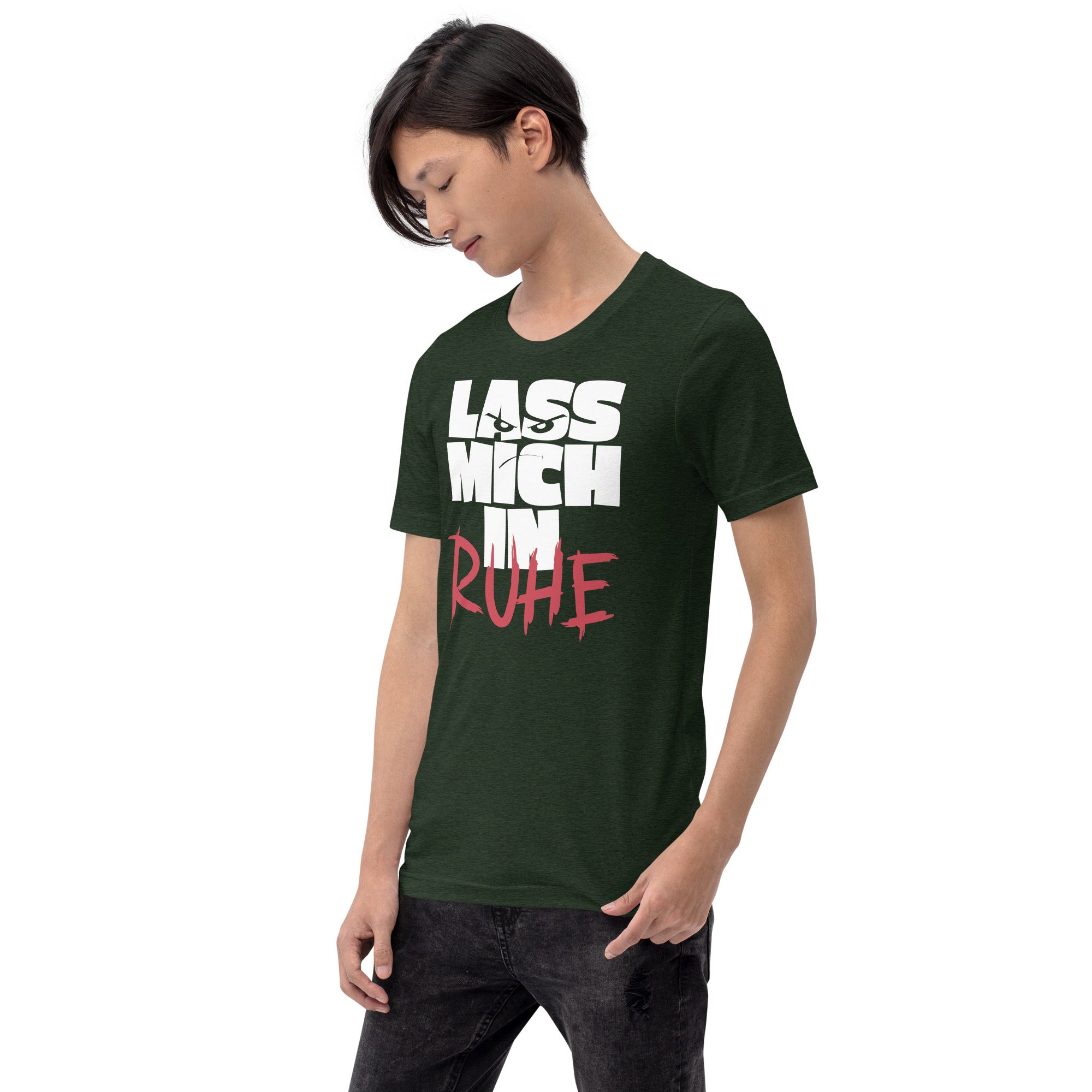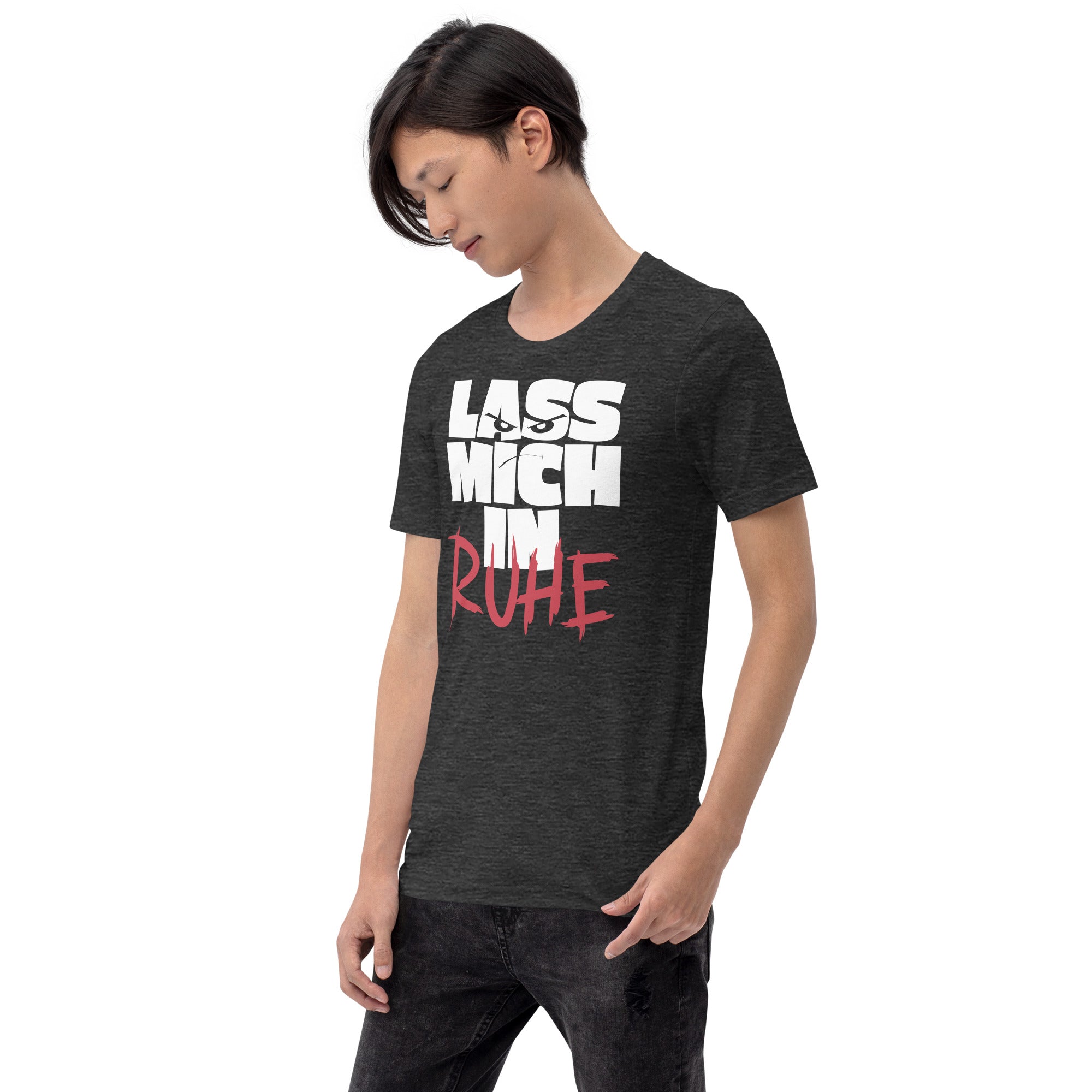 Phrase ' Lass Mich In Ruhe ' german for  ' Leave Me Alone ' in bold print with mean eyes graphic